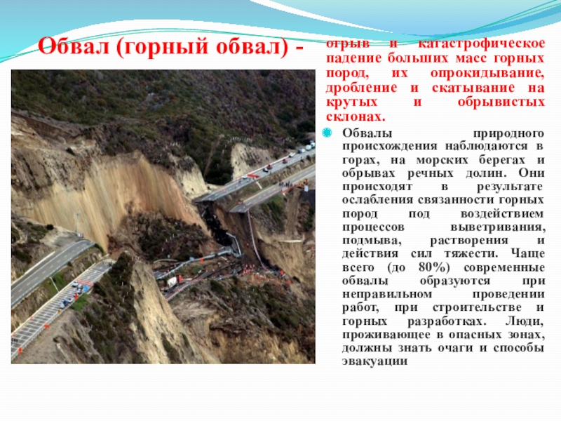 Лава – это раскаленная жидкая или очень вязкая масса, изливающаяся на поверхность Земли при извержении вулканов. Температура лавы может достигать 1200°С и более. Потоки раскаленной лавы достигают толщины 4-5 метров, скорость их движения может достигать от нескольких метров до 50 - 80 км/час. Лава может растекаться на десятки километров от вулкана (20 – 80 км.), поражая площадь в сотни квадратных километров.