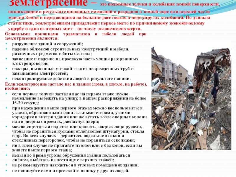 Основными причинами травматизма и гибели людей при землетрясении являются: