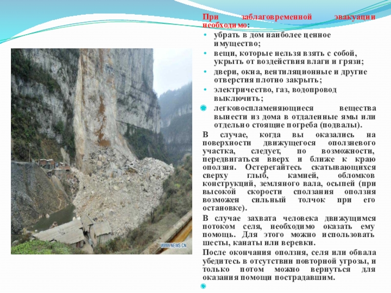 После получения сообщения о стабилизации обстановки выходить из дома следует осторожно, необходимо осмотреться – нет ли нависающих предметов и частей конструкций, оборванных электропроводов т.к. не исключена вероятность того, что они находятся под напряжением.