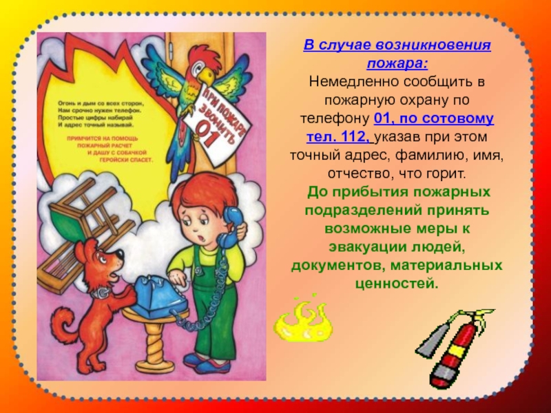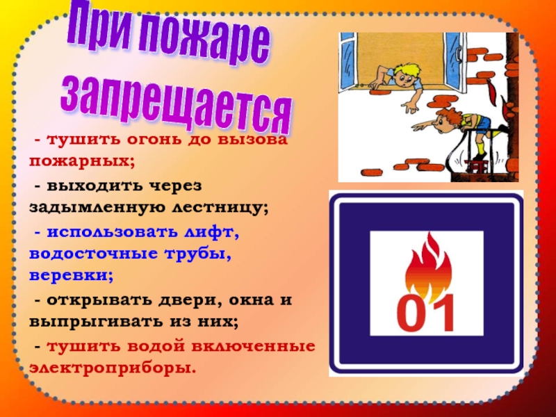 01 - пожарная охрана, 112 - (с сотового телефона);
