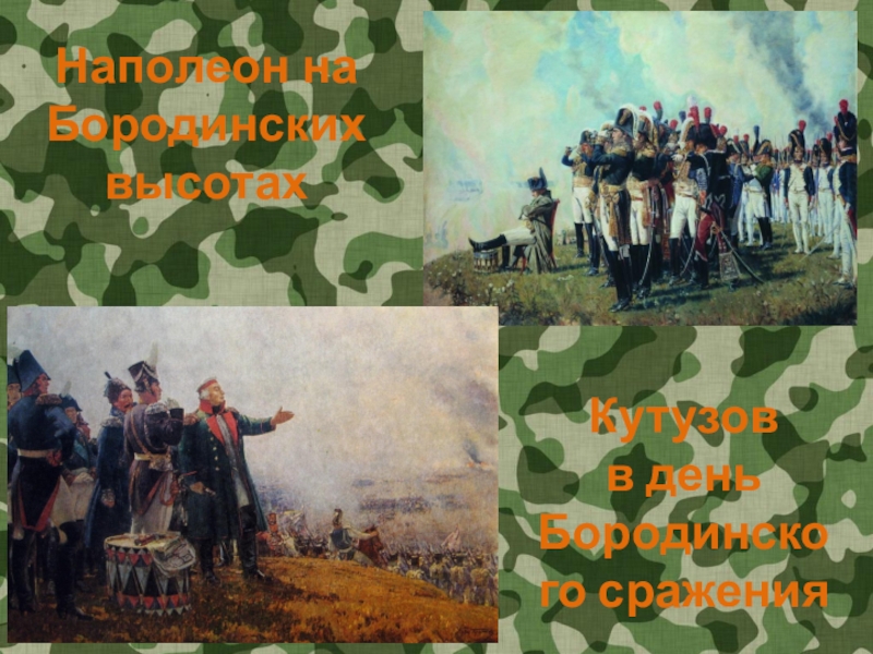 Наполеон на Бородинских высотахКутузов в день Бородинского сражения