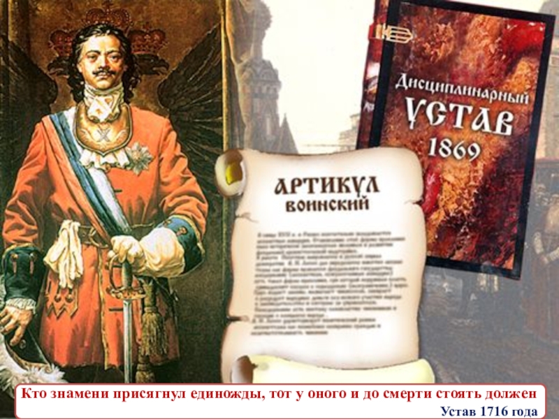 присяга, сохранившаяся до наших дней, а также появляются различные уставы и инструкции, регламентирующие армейскую жизнь.
