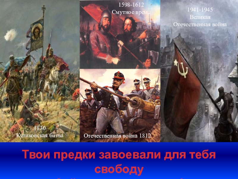 Здесь, на наших землях были многократно затуплены и сломаны мечи татаро-монгол и тевтонов, поляков и шведов, турок и татар, немцев и австрийцев, французов и англичан, итальянцев и румын, японцев и арабов.