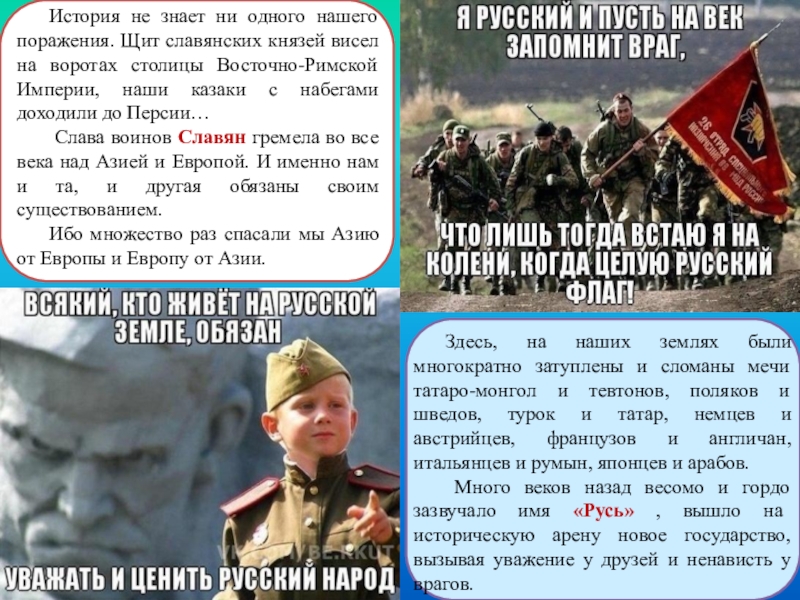 Слава воинов Славян гремела во все века над Азией и Европой. И именно нам и та, и другая обязаны своим существованием.