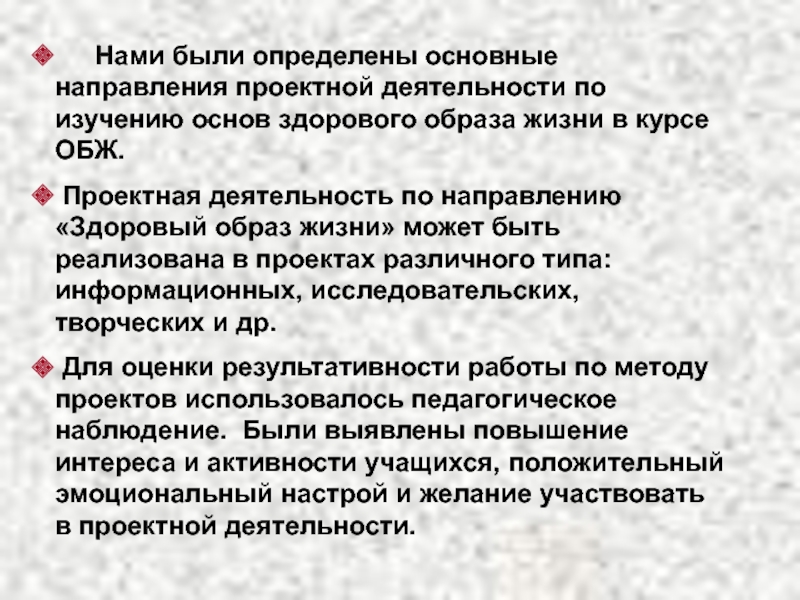 Слайд 23 Нами были определены основные направления проектной деятельности по изучению основ здорового