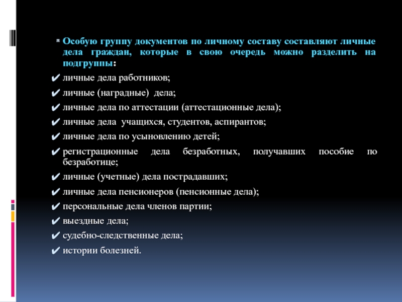 Слайд 7Особую группу документов по личному составу составляют личные дела граждан, которые