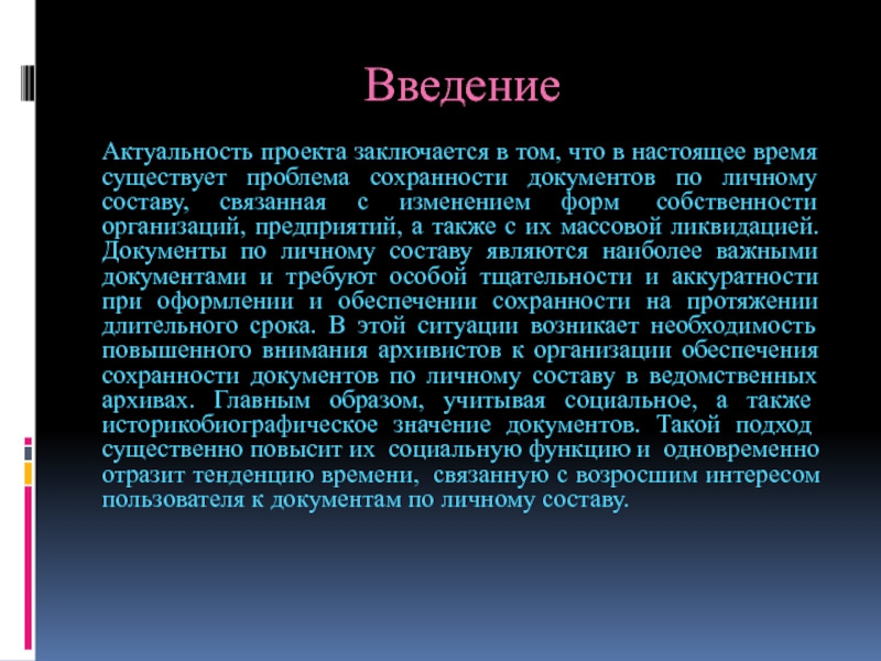 Документы по личному составу являются наиболее важными документами и требуют особой тщательности и аккуратности при оформлении и обеспечении сохранности на протяжении длительного срока.