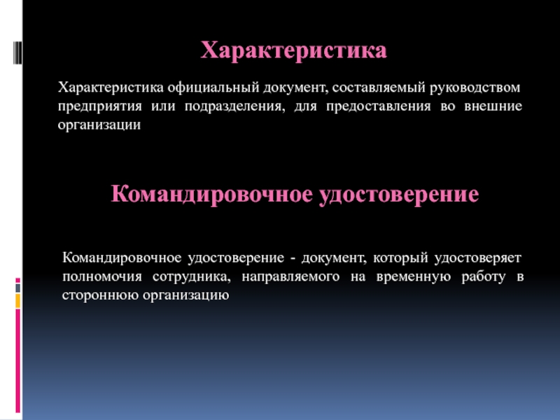Характеристика официальный документ, составляемый руководством предприятия или подразделения, для предоставления во