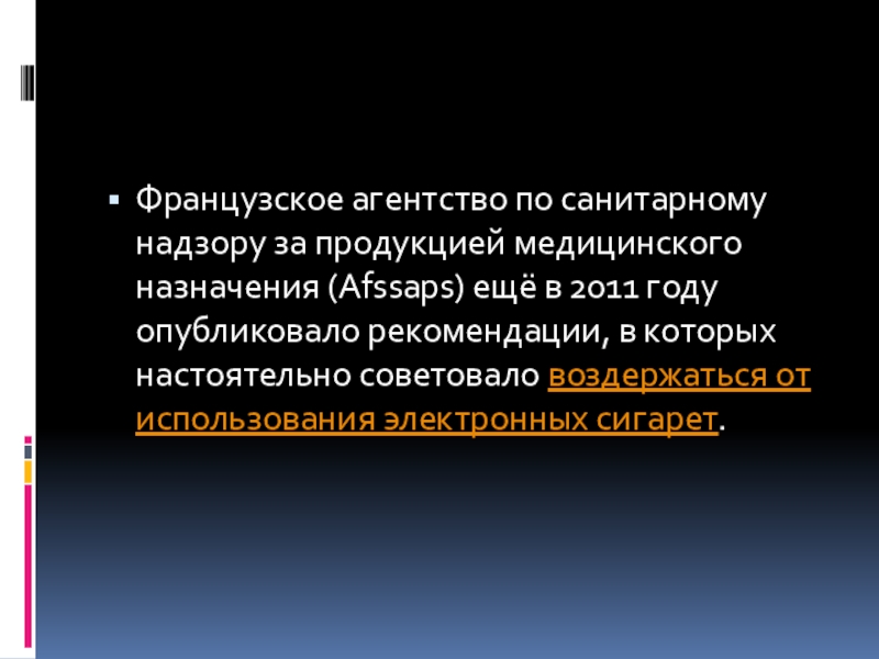 Слайд 14Французское агентство по санитарному надзору за продукцией медицинского назначения (Afssaps) ещё