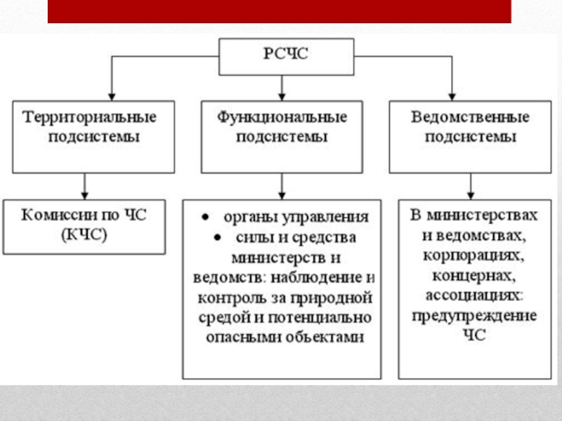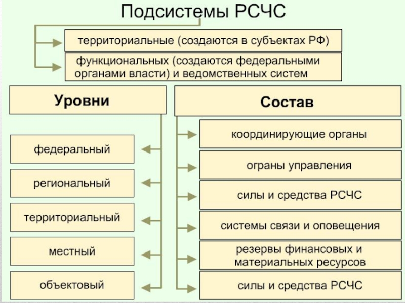 Организационная структура РСЧС состоит из территориальных и функциональных подсистем