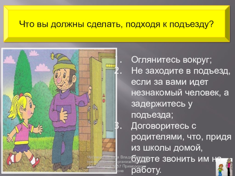 Не заходи в подъезд или лифт, если там находится посторонний человек