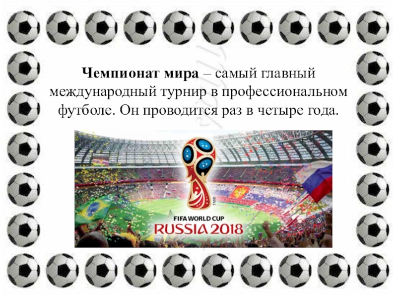Слайд 13Чемпионат мира – самый главный международный турнир в профессиональном футболе. Он