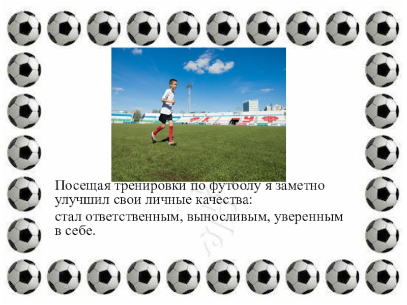 Посещая тренировки по футболу я заметно улучшил свои личные качества: