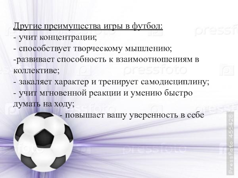 Другие преимущества игры в футбол: