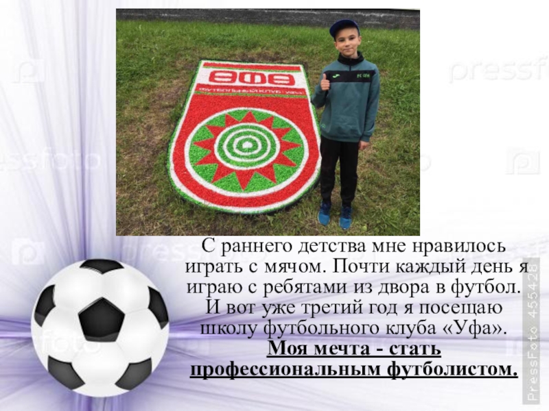 я играю с ребятами из двора в футбол. И вот уже третий год я посещаю школу футбольного клуба «Уфа». Моя мечта - стать профессиональным футболистом.