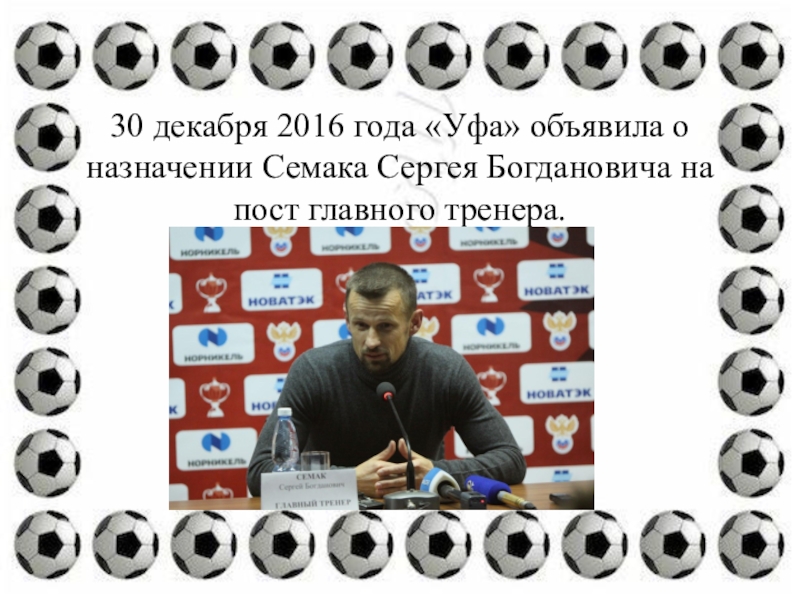 Слайд 1730 декабря 2016 года «Уфа» объявила о назначении Семака Сергея Богдановича