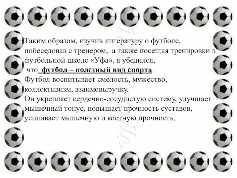 Таким образом, изучив литературу о футболе, побеседовав с тренером, а также