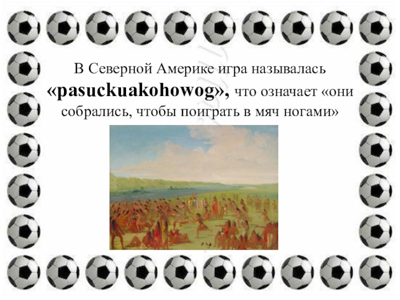 Слайд 9В Северной Америке игра называлась «pasuckuakohowog», что означает «они собрались, чтобы