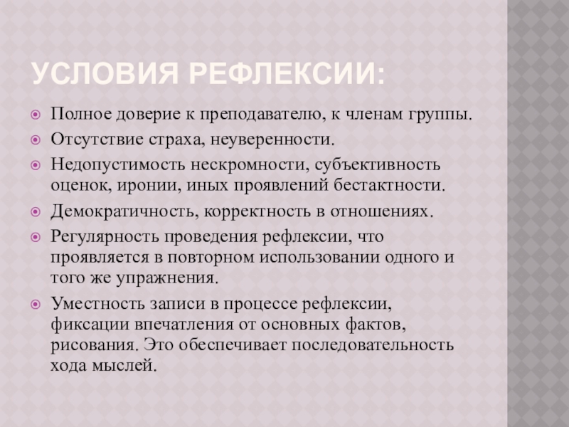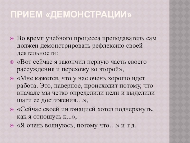 Во время учебного процесса преподаватель сам должен демонстрировать рефлексию своей