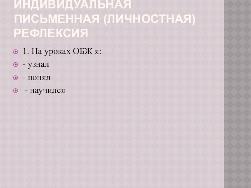 Слайд 20Индивидуальная письменная (личностная) рефлексия