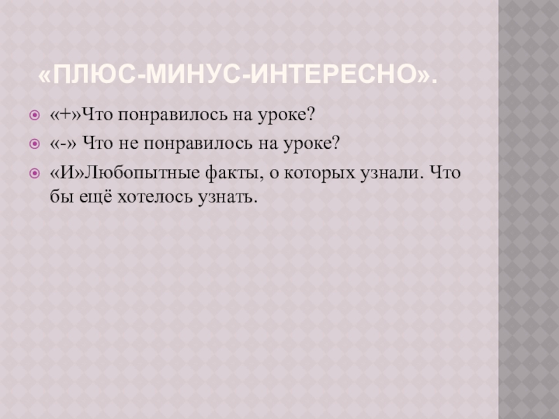 данным прием, в котором обучающиеся оценивают работы и вклад друг друга в урок и благодарят друг друга и преподавателя за проведенный урок. Такой вариант окончания урока дает возможность удовлетворения потребности в признании личностной значимости каждого.