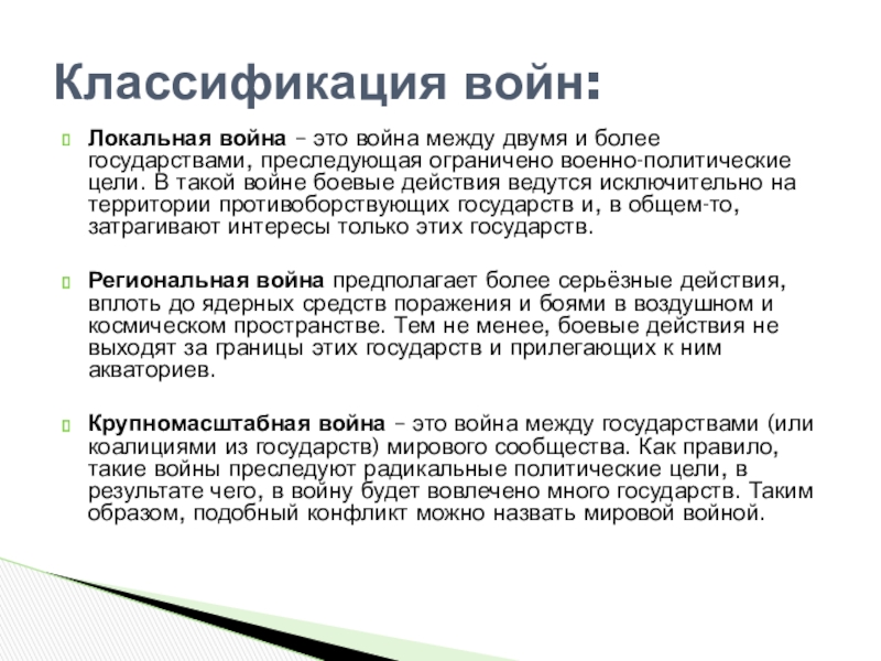 Классификация войн: