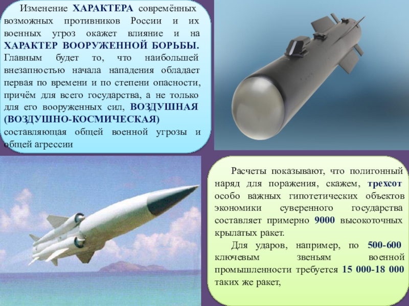 Расчеты показывают, что полигонный наряд для поражения, скажем, трехсот особо важных гипотетических объектов экономики суверенного государства составляет примерно 9000 высокоточных крылатых ракет.