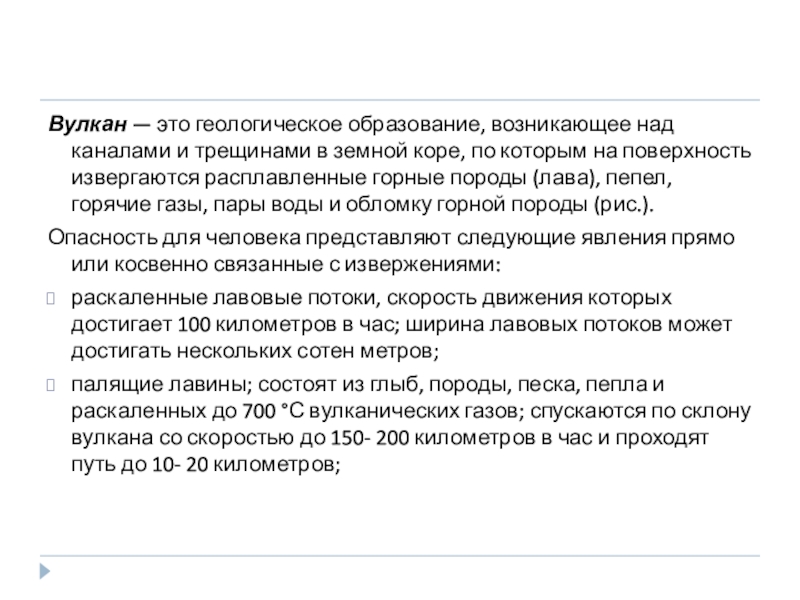 Опасность для человека представляют следующие явления прямо или косвенно связанные с извержениями: