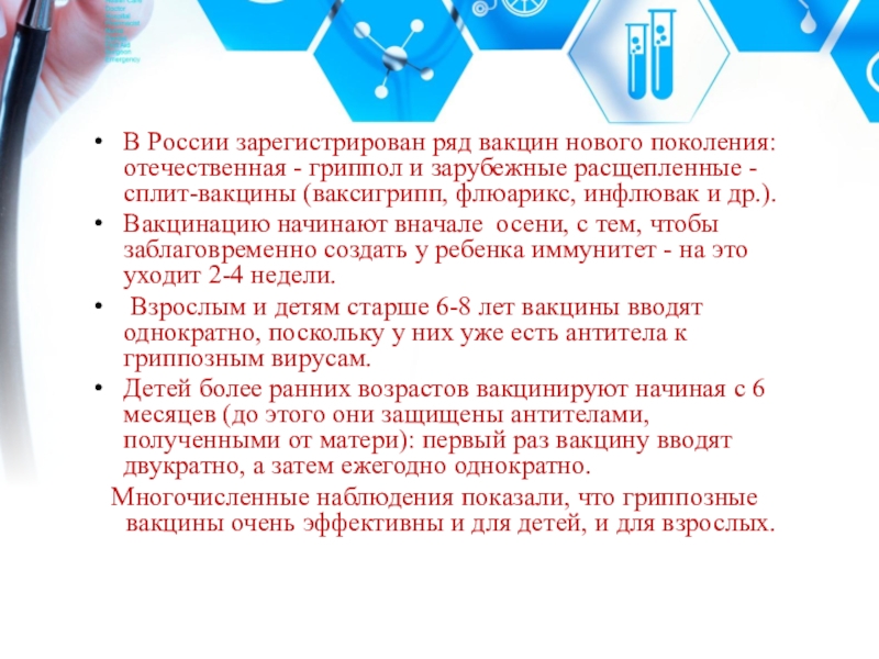 В России зарегистрирован ряд вакцин нового поколения: отечественная - гриппол и