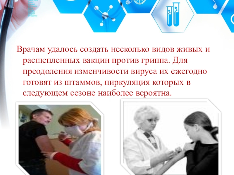 гриппа. Для преодоления изменчивости вируса их ежегодно готовят из штаммов, циркуляция которых в следующем сезоне наиболее вероятна.