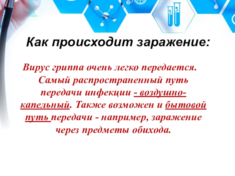 Вирус гриппа очень легко передается. Самый распространенный путь
