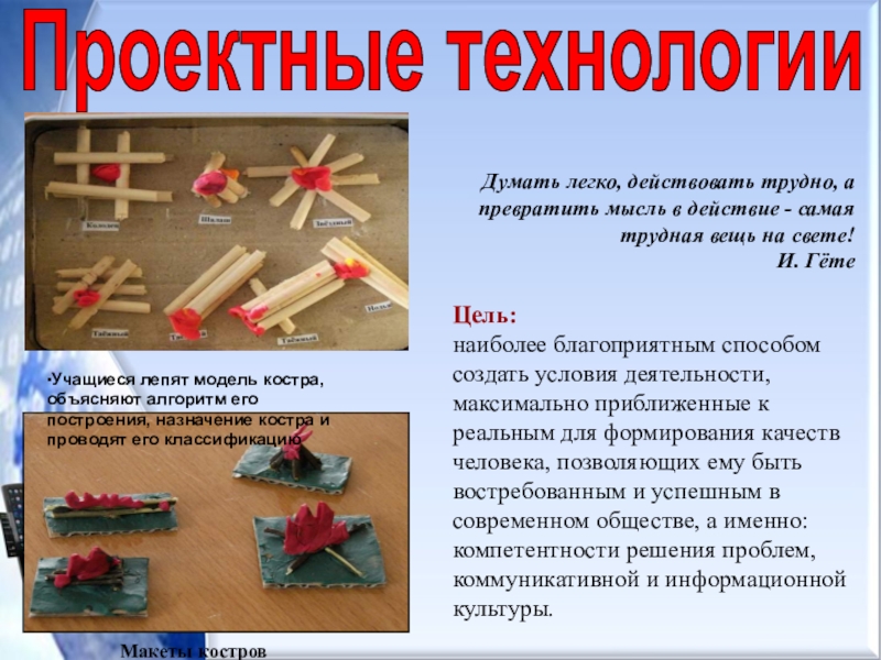 •Учащиеся лепят модель костра, объясняют алгоритм его построения, назначение костра и проводят его классификацию
