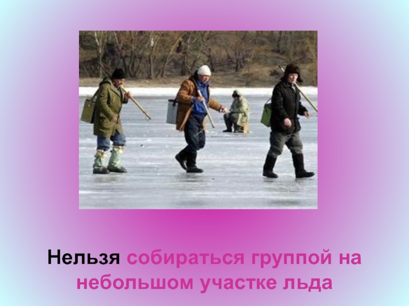 Слайд 5Нельзя собираться группой на небольшом участке льда