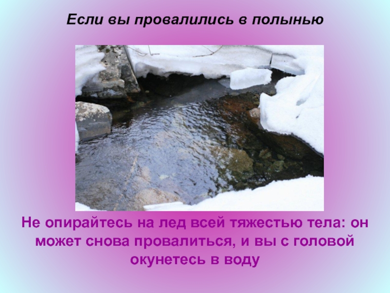 полыньи лед очень хрупкий и не выдержит тяжести вашего тела