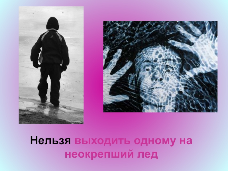 Слайд 4Нельзя выходить одному на неокрепший лед