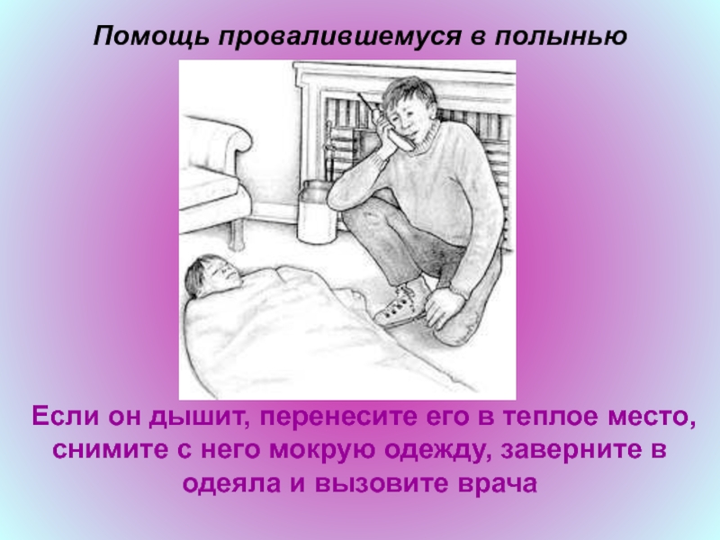 снимите с него мокрую одежду, заверните в одеяла и вызовите врача