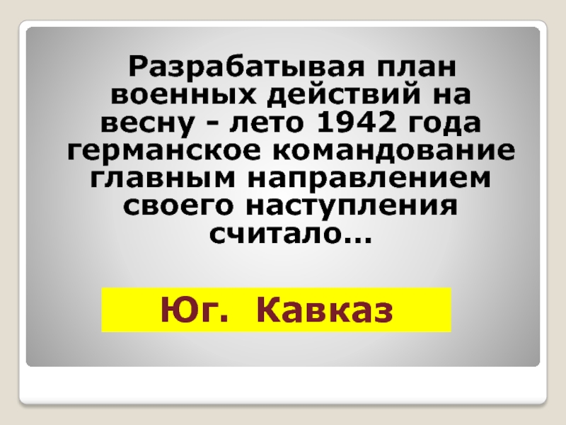 Разрабатывая план военных действий на весну - лето 1942