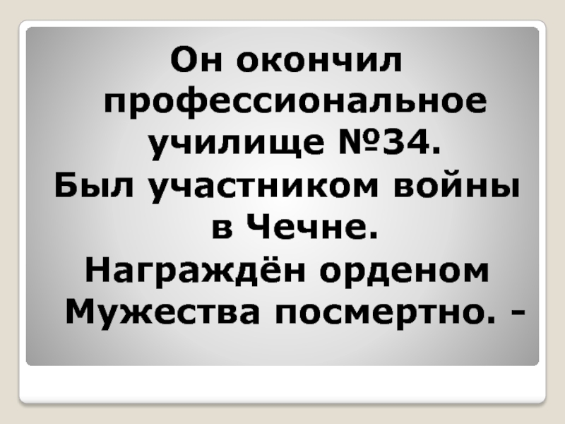 Слайд 47Он окончил профессиональное училище №34.