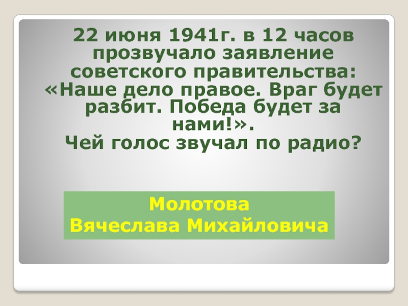 Слайд 4 22 июня 1941г. в 12 часов прозвучало заявление