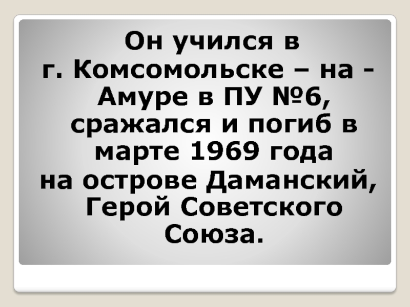 ПУ №6, сражался и погиб в марте 1969 года