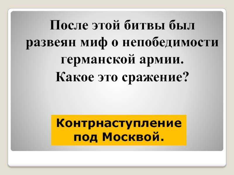 Слайд 10 После этой битвы был развеян миф о непобедимости германской армии.