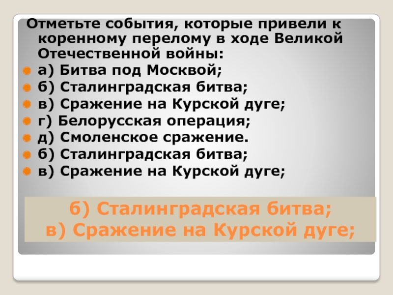 Слайд 11б) Сталинградская битва;