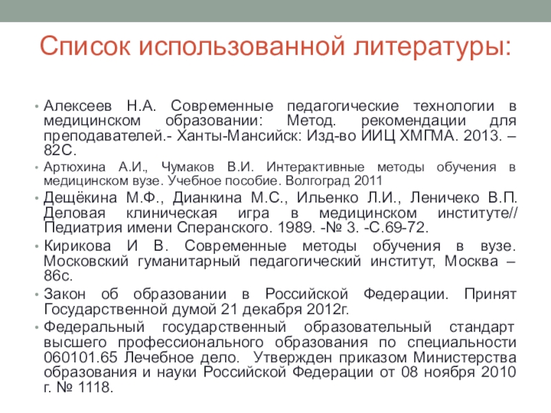 Артюхина А.И., Чумаков В.И. Интерактивные методы обучения в медицинском вузе. Учебное пособие. Волгоград 2011