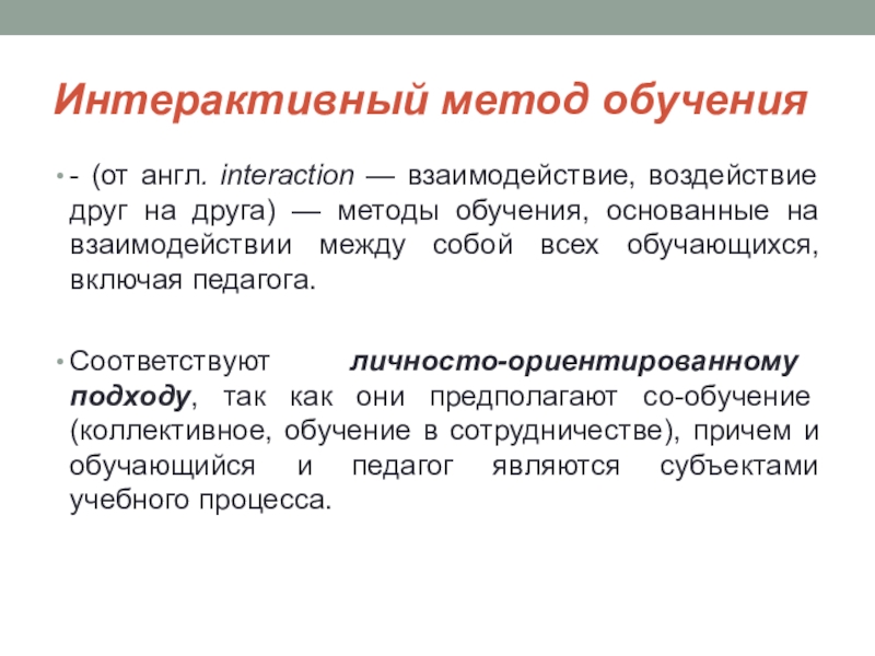 которой они взаимодействуют друг с другом в ходе занятия и студенты здесь не пассивные слушатели, а активные участники, студенты и преподаватель находятся на равных правах.