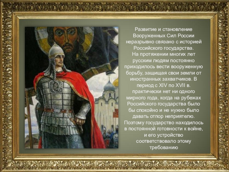Слайд 7Развитие и становление Вооруженных Сил России неразрывно связано с историей Российского