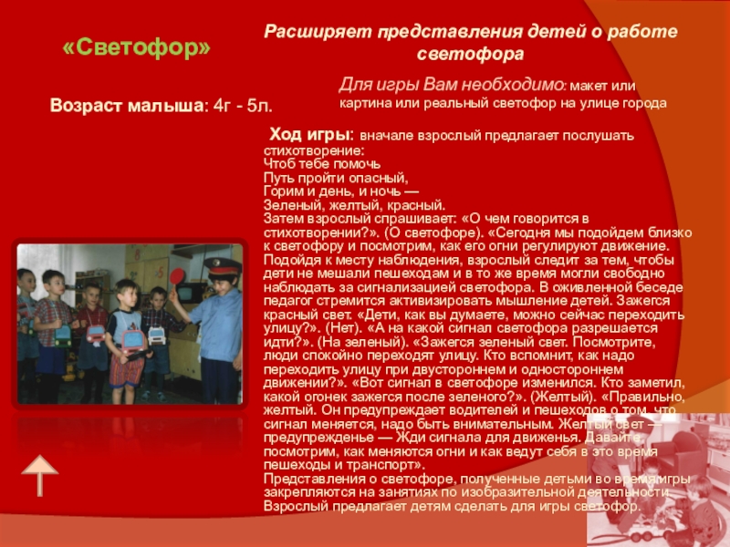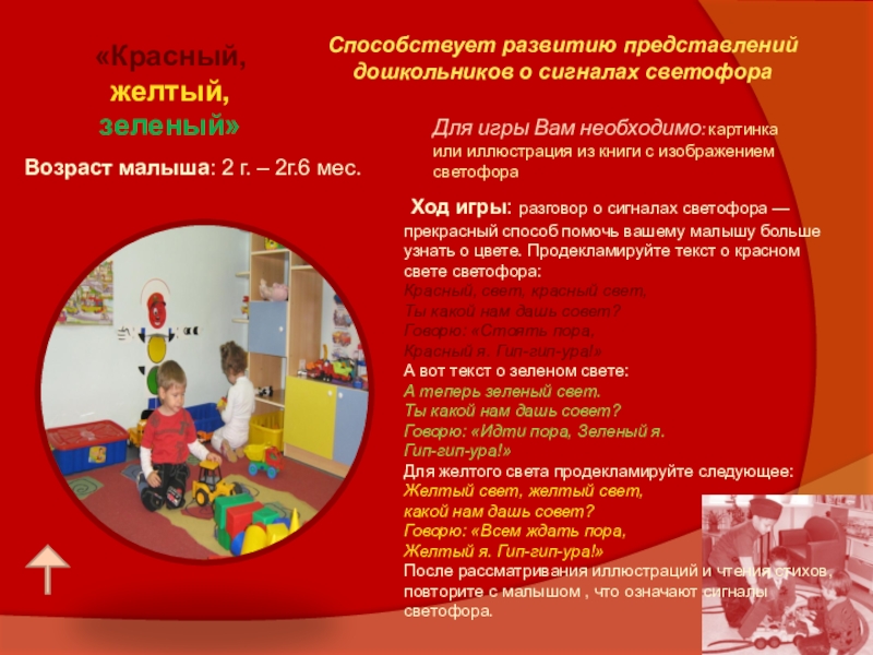 Ход игры: разговор о сигналах светофора — прекрасный способ помочь вашему малышу больше узнать о цвете. Продекламируйте текст о красном свете светофора: