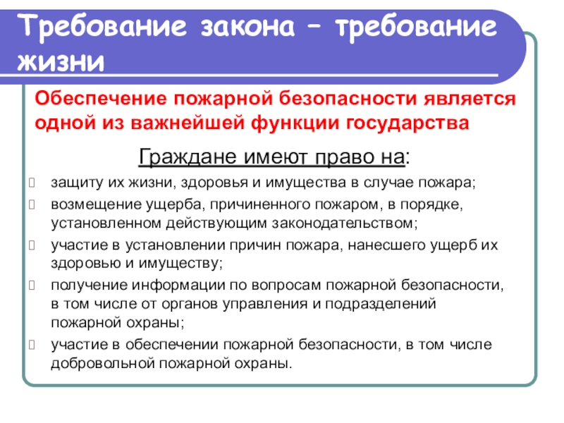Обеспечение пожарной безопасности является одной из важнейшей функции государства