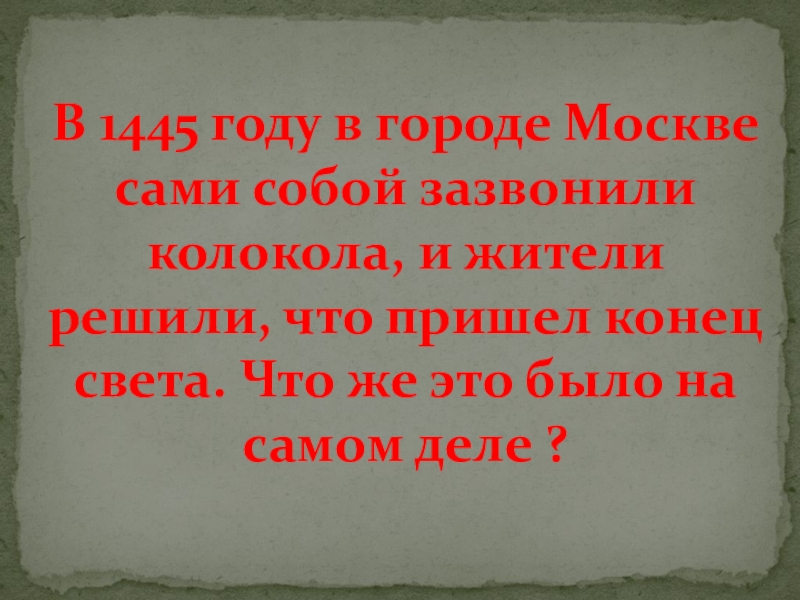 Слайд 48В 1445 году в городе Москве сами собой зазвонили колокола, и