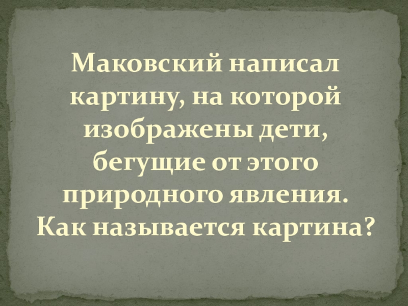 Слайд 24Маковский написал картину, на которой изображены дети, бегущие от этого природного