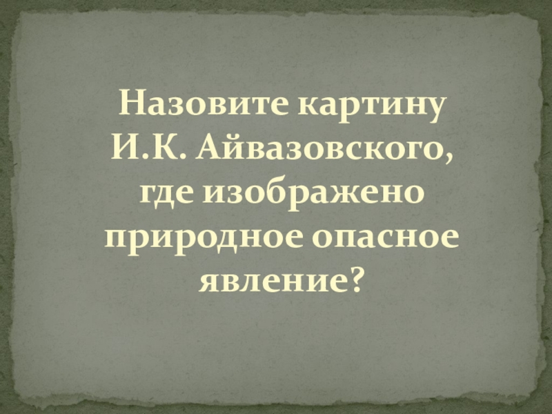 Слайд 21Назовите картину И.К. Айвазовского, где изображено природное опасное явление?